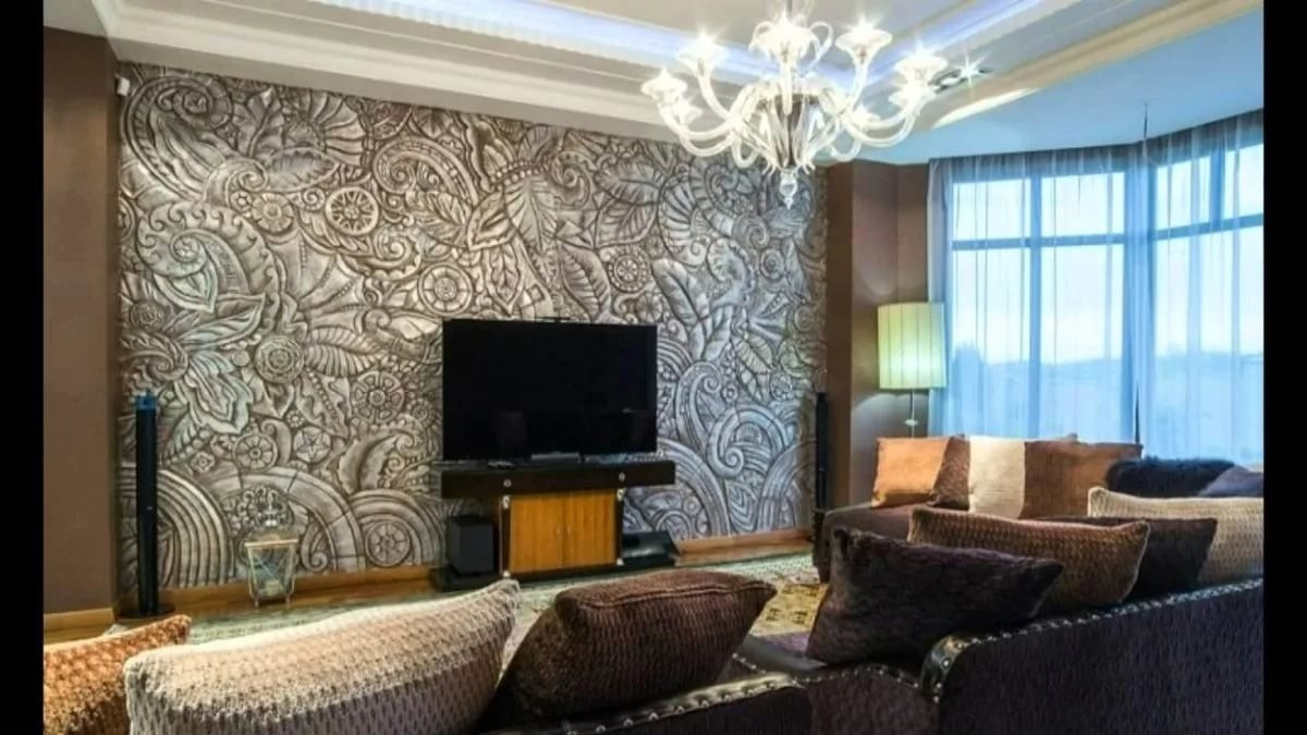 Liquid wallpaper. The method of application, like their appearance, is similar to plaster, but the composition is significantly different. Plaster, like painted walls, is a popular option in 2019. Therefore, liquid wallpaper is perfect for creating a fashionable design.