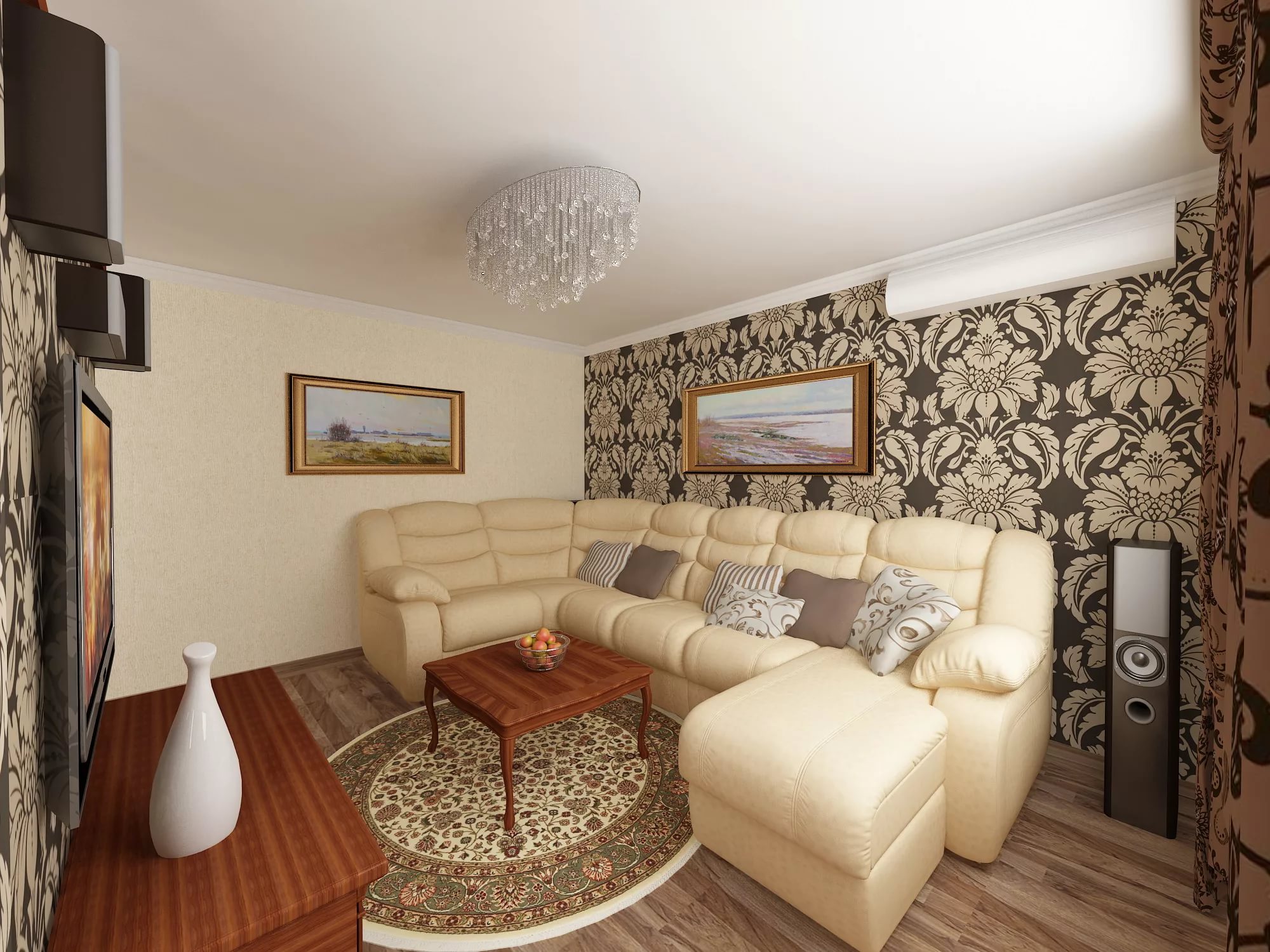 In order not to make the room difficult to perceive, reduce the number of complex combinations, both color and patterned, and also do not use more than 3 different colors.