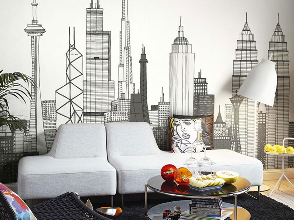 It is better to paste a small room with an end room without a window on the wall murals that “dissolve” the wall. A panorama that opens the door to city blocks or to a forest lawn is the easiest way to transform a limited space.
