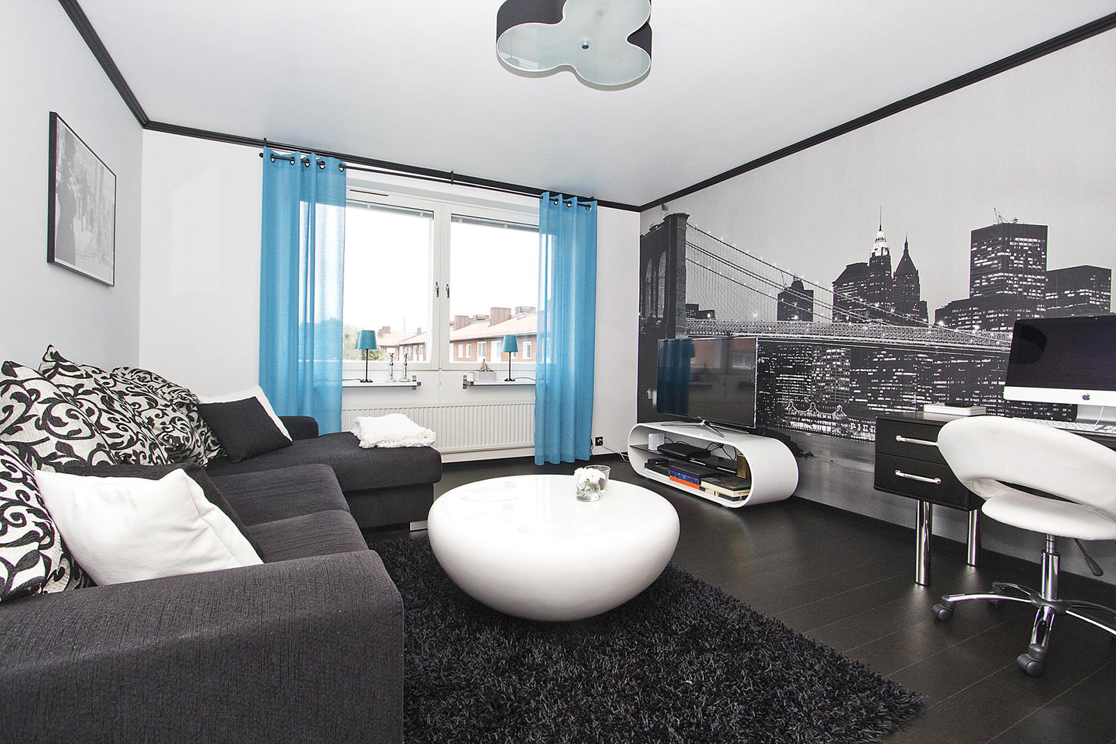 Walls with black wallpapers draw attention to other interior items