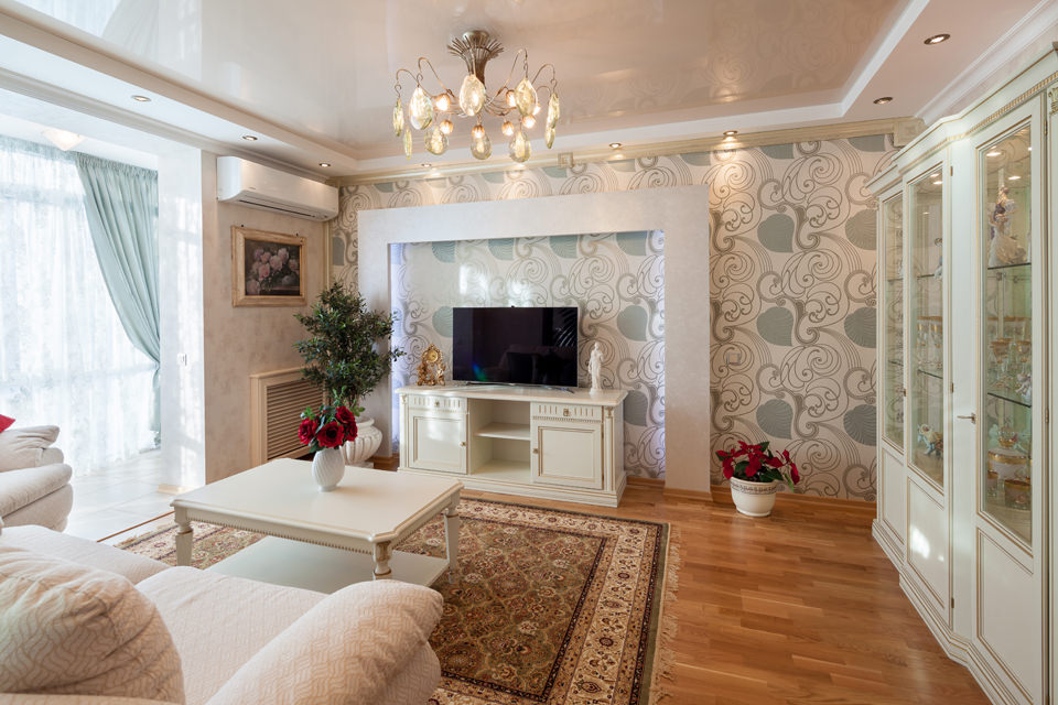 Not so long ago there were no problems with the choice of finishing materials, including wallpaper for the living room, there were few of them, all paper, with a small offer of colors. Today it is difficult to dwell on one thing, when they start another repair - a huge assortment of drawings, textures and materials. Even experienced designers often find it difficult to browse catalogs of imported and domestic goods. In order for the interior design to turn out not only original, but also harmonious, it is important to take into account the recommendations of specialists.