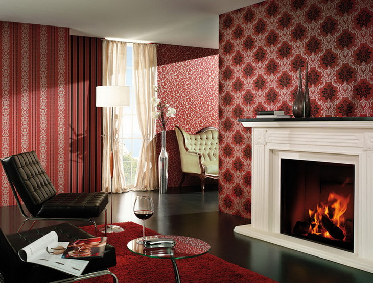 | 3. | Red (scarlet, cumach) | Active color, a symbol of passion, has bloody and other aggressive colors, they can not be combined with black wallpaper in the bedroom and living room. Often used on an accent wall along with beige, but not as the main one. |
