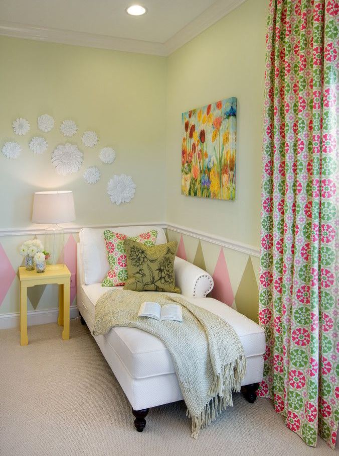 | 4. | Pink | A gentle background, has several floral shades, is ideal for a female bedroom or young spouses, “expands” the room, is well perceived with white and light green. |