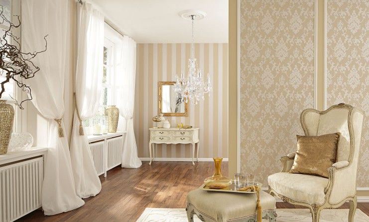 Wallpaper was not used in historical styles, but today there are many proposals that imitate the coverings of palaces, temples and medieval castles. Baroque and Rococo - use wallpaper with monograms and imitation of modeling. Frames, cornices, classical architectural elements, including in the image of wallpaper, are appropriate.