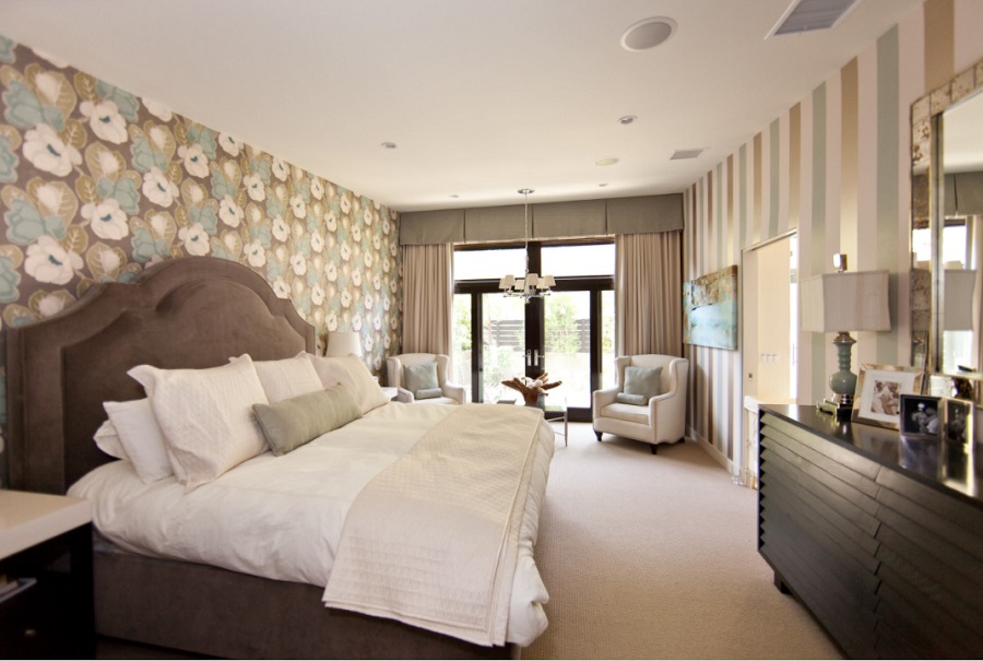 In a bedroom, it is best to focus on the wall behind the head of the bed.