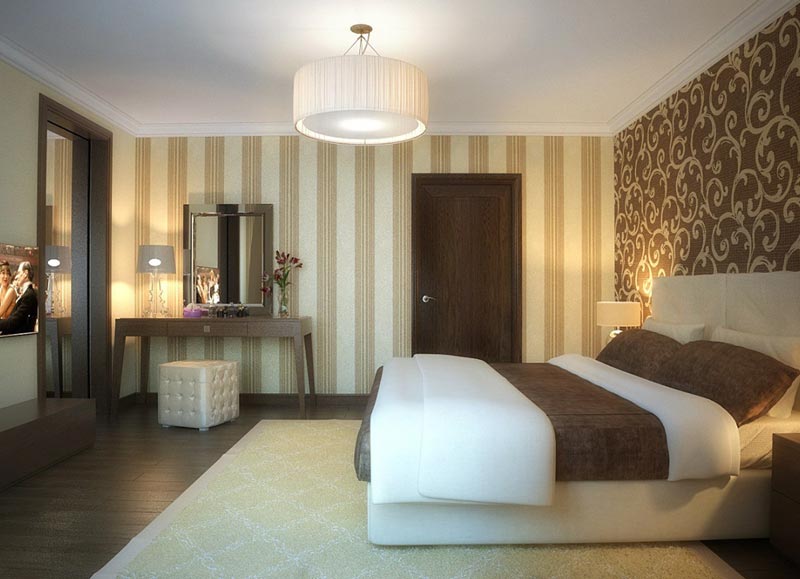 Remember that in a spacious room you can give vent to bold experiments, in a small room it is better to avoid large drawings and sharp contrasts that divide the space. More interesting variations are in our photo gallery.