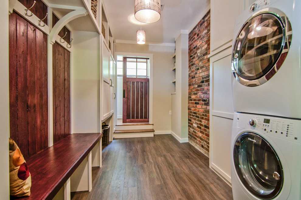 All variants of the picture are possible in the hallway - a room that is traditionally associated with interiors with brick wallpaper. If the design is created "from scratch" or without reference to style and decor, then you can build on the assortment of wall coverings. Everything else, except for interior doors, if they already exist, should be in harmony with the imitation of masonry.