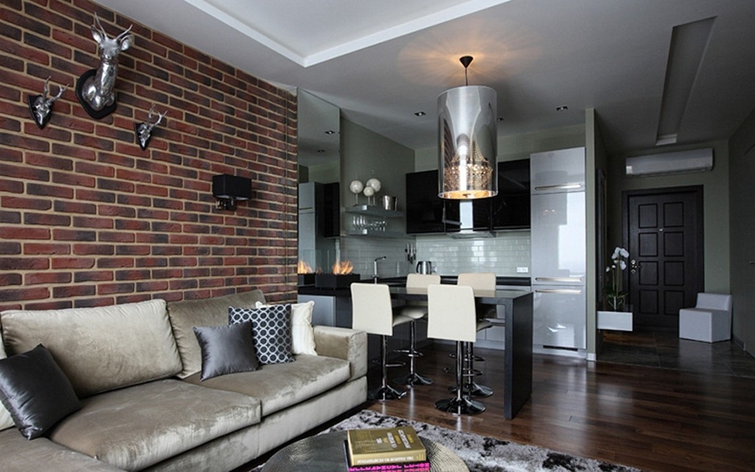 Various options for imitating masonry are a favorite way of creating an accent wall for famous designers working in the styles of loft, high-tech, fusion, country, minimalism. But even this list of such conceptually different styles is not limited to the possibility of using this wall cladding. Anyone who wants to create an inimitable author’s interior can use this technique - it will turn out as in the photo.