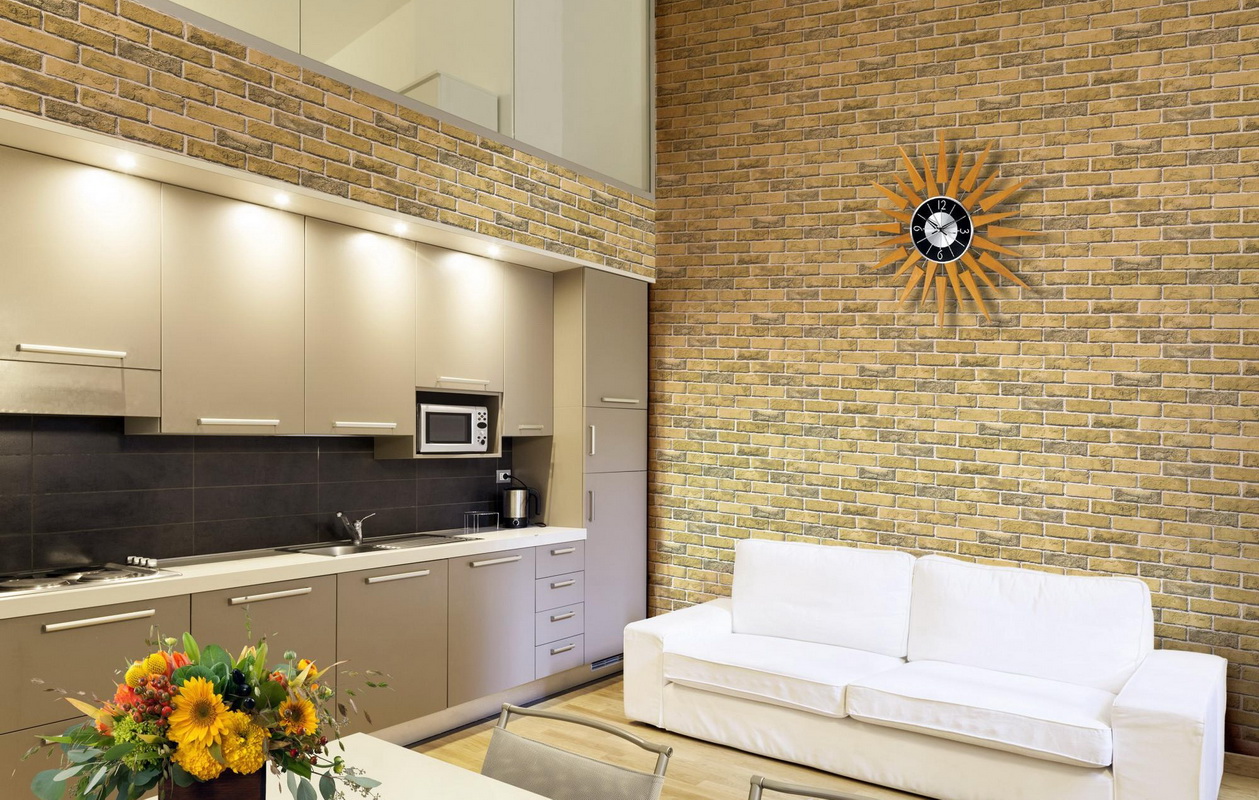 | 2. | Redesigning the room without a problem | During the reconstruction or redevelopment of the premises for the construction of a heavy brick wall, permission from the city authorities will be required, for a lightweight plasterboard partition lined with "brick" wallpaper, it will not be needed. |