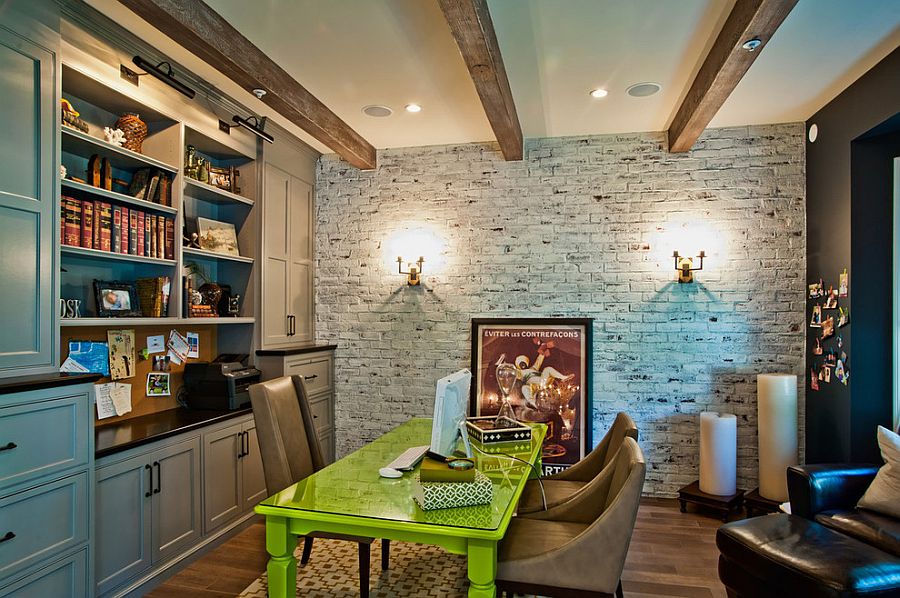 Nowadays, imitation of brickwork is typical for democratic interior styles.