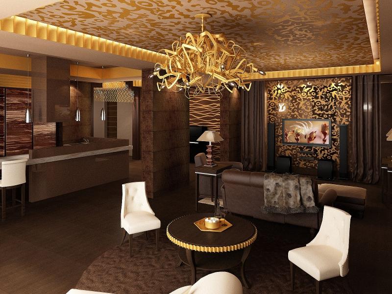 Designers offer new solutions to those who love a golden color in the interior, especially when it is stylistically appropriate. It was actively used in the Baroque and Rococo times, as well as in oriental stylistics and eclectic design at the turn of the twentieth century. But such an interior requires a sense of proportion to avoid vulgarity and pseudo-luxury, like "Barbie style", "glamor" and "ruble."