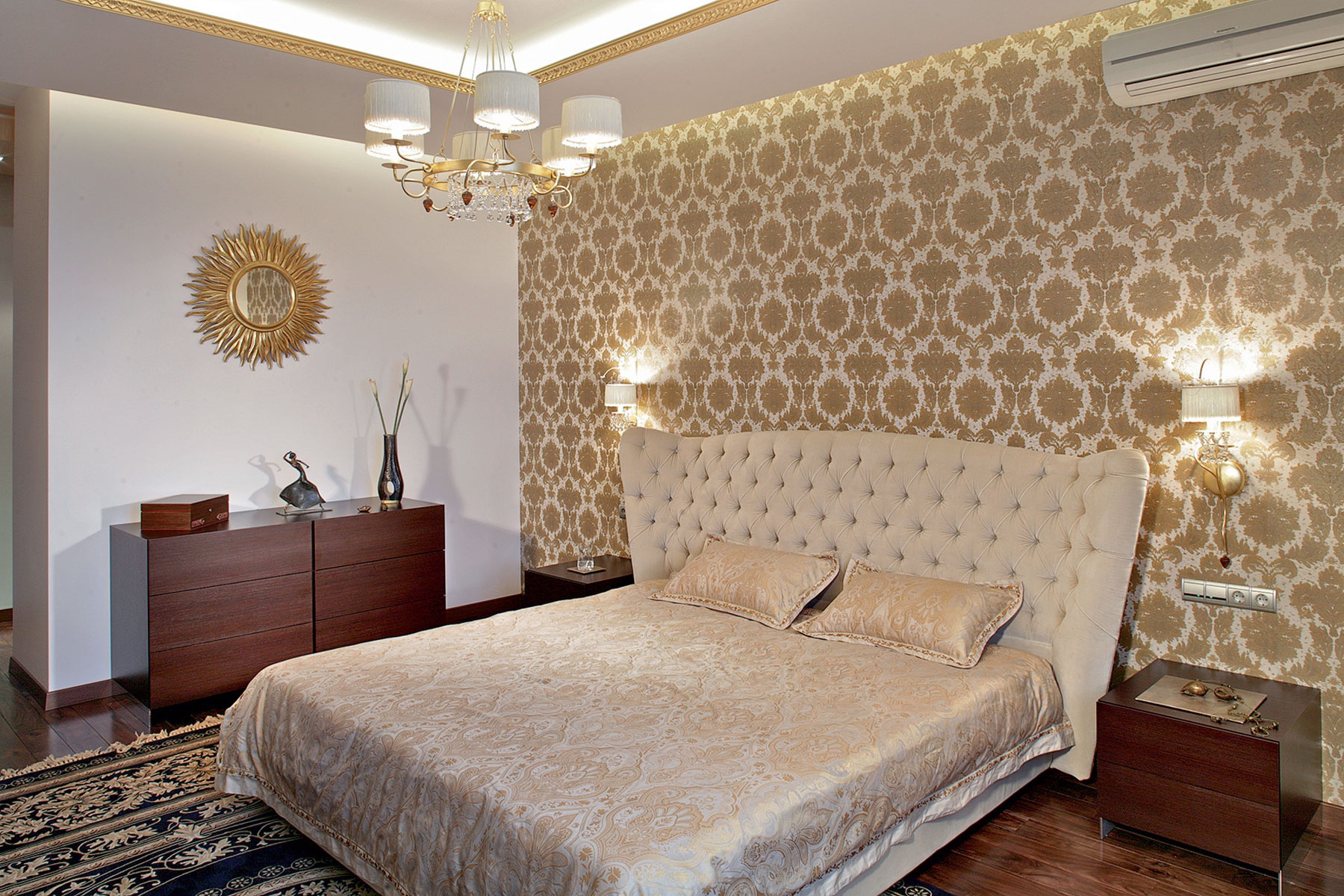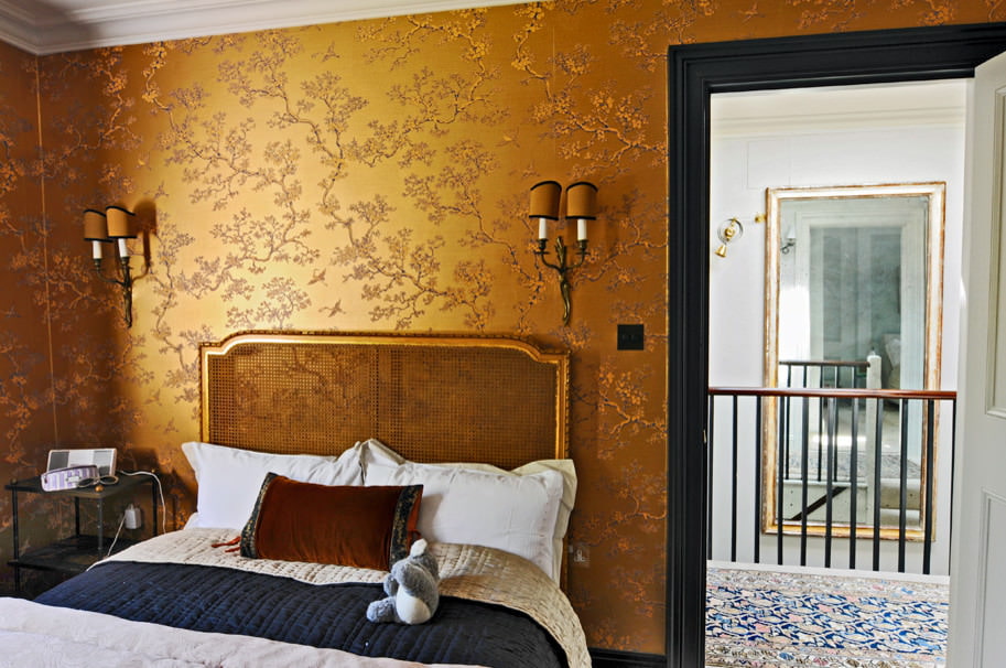 A room with dark gold wallpaper should have good lighting