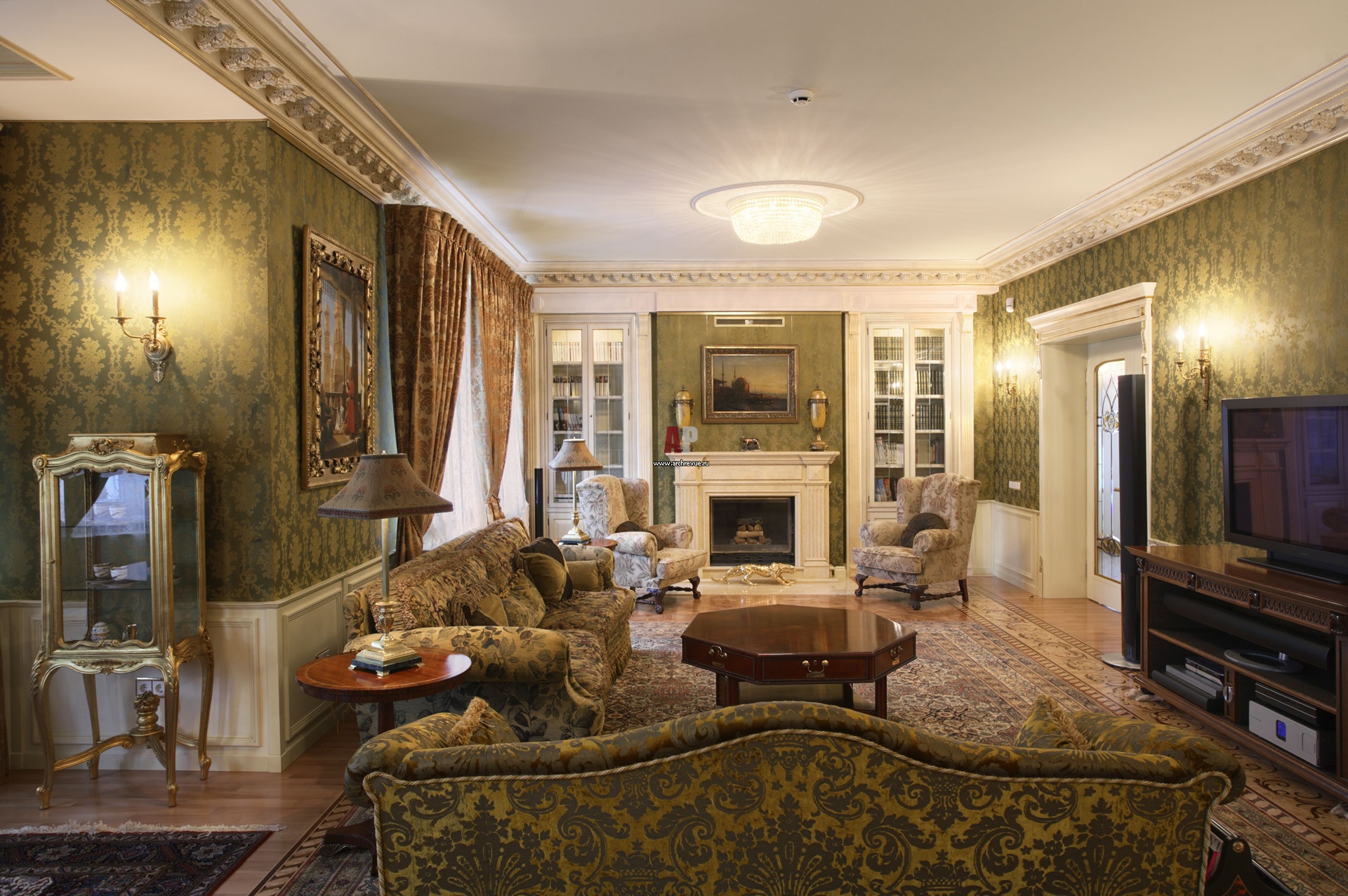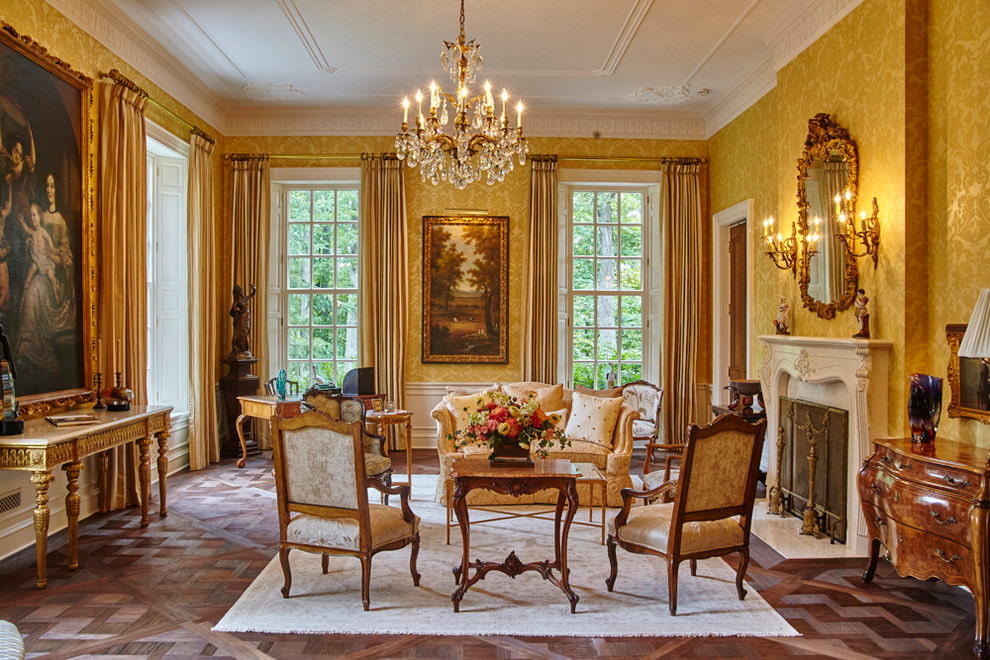Most often, gold walls are found in all varieties of the classical style