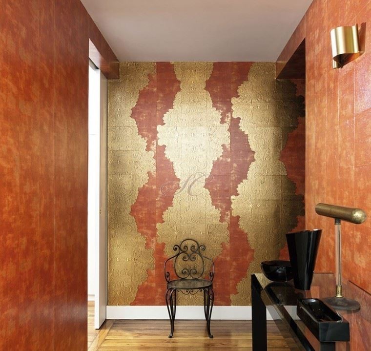 Today, many refuse brilliant finishes, fearing accusations of bad taste and "mannerism." But you can get a refined setting, dosed using the golden color of the wallpaper, but only where appropriate.