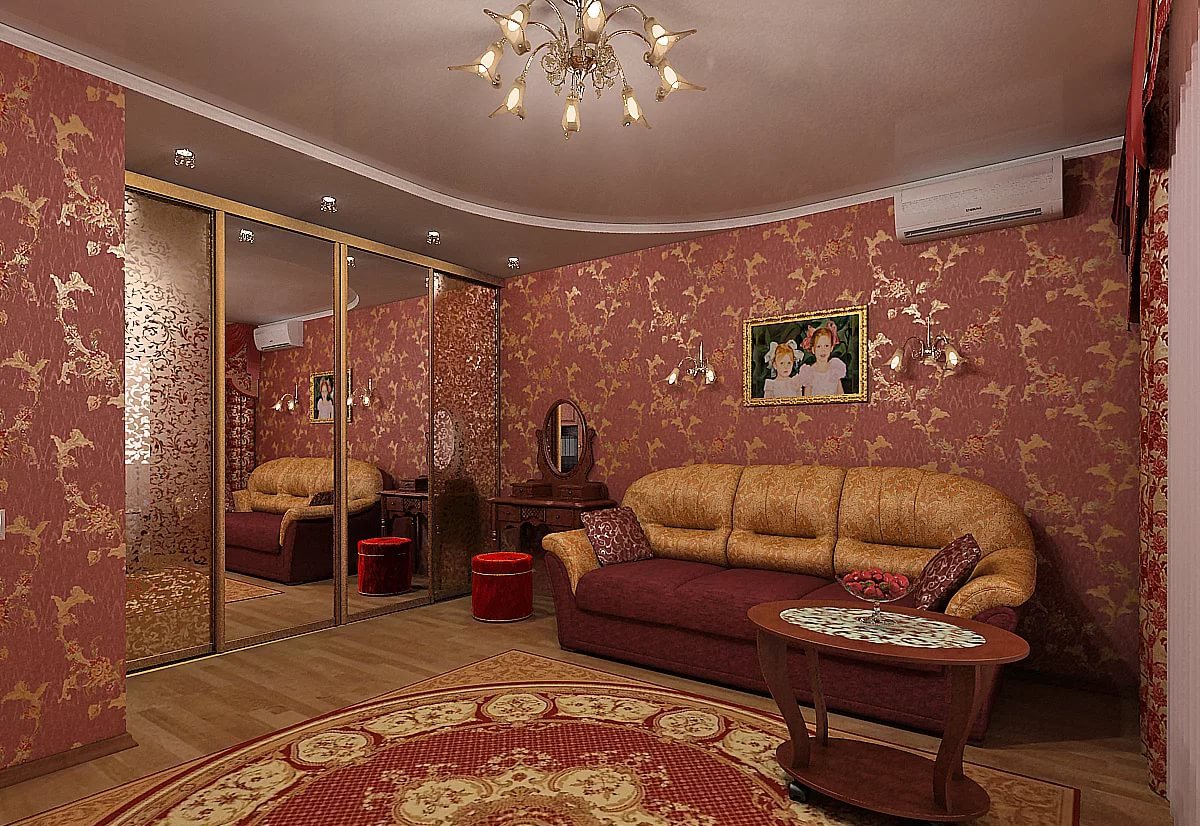Attention! The excess of shiny surfaces in the living room looks too pompous, even vulgar, golden wallpaper often creates glare, tiring visual perception.