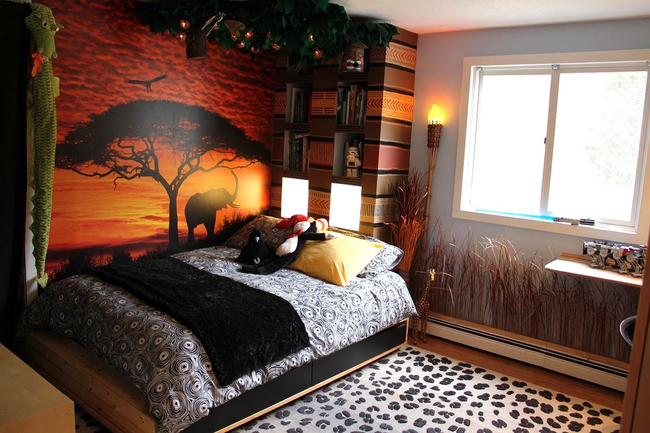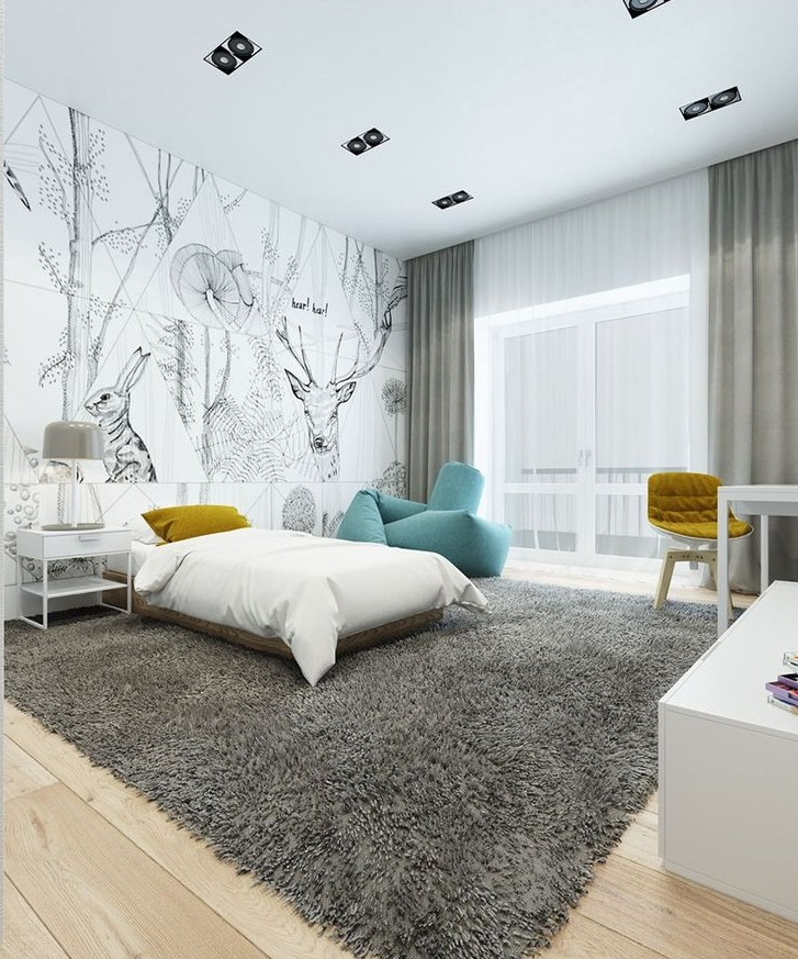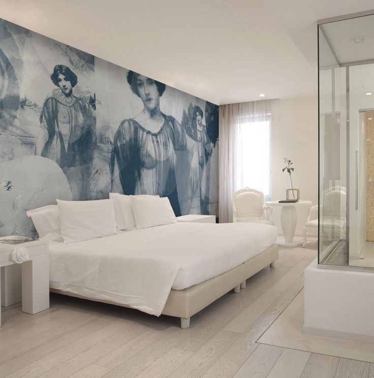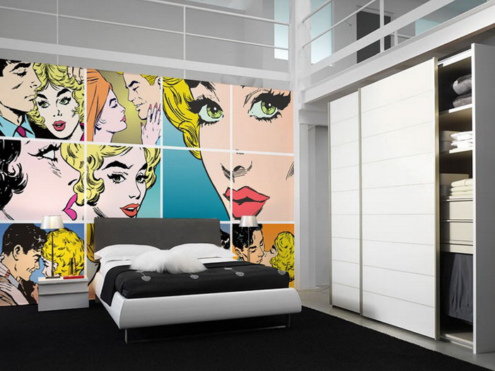 In the bedroom, wall murals look excellent, differing by several tones from the dominant color of the interior