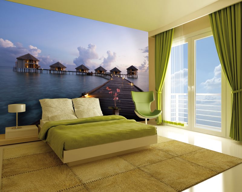 In any bedroom, wallpapers with photographs of natural landscapes, forests, marine themes look great. Walls with such photos not only calm the nervous system, but also visually expand the space of the room, especially pictures with a 3D effect. Natural colors enable the body to fully relax.