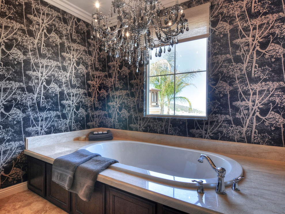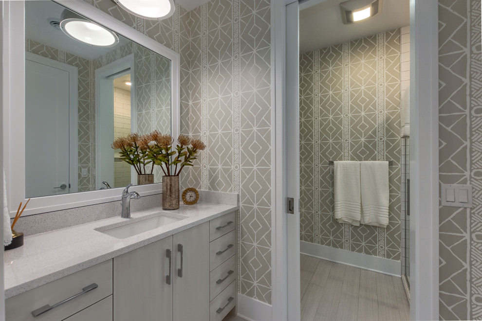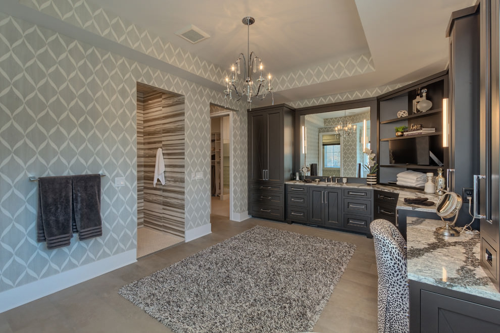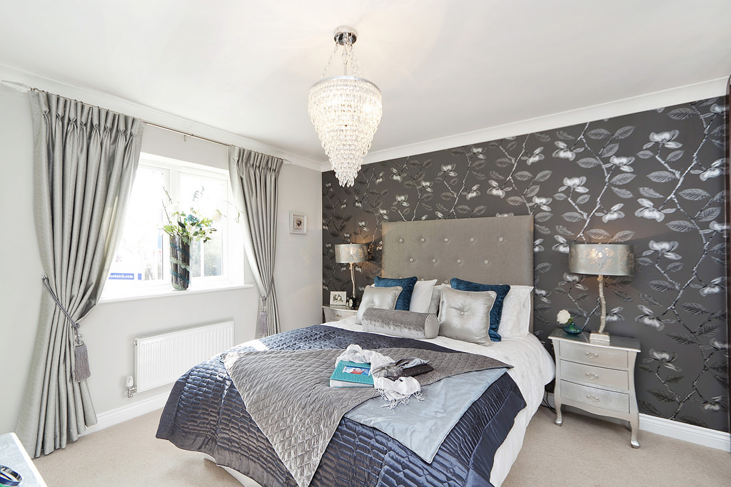 A room with gray wallpaper looks reserved and luxurious at the same time.