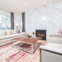 One simple accent method is to use companions. The ideal would be to purchase wallpaper from one manufacturer, so that the density and quality features do not visually differ. The combined methods of wallpapering and design of living rooms 2019 are presented in the photo. Printed canvases are best applied on only one wall, and for the rest choose plain colors. The print can be from nearby flowers to plain wallpaper, or from contrasting. A wall completely pasted over with a print will look like a huge poster. It’s better to stick a fixed-size wallpaper and cut a frame around the edges. There are several combination methods: