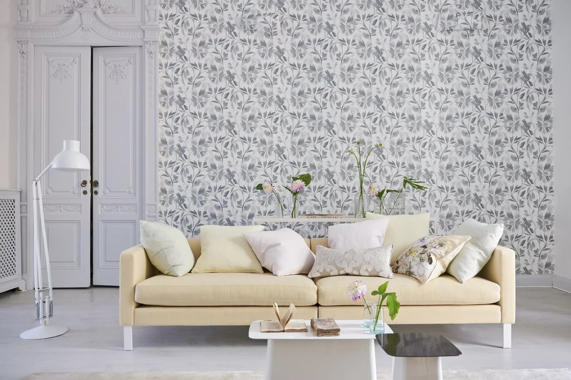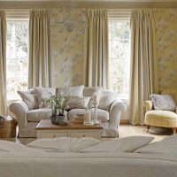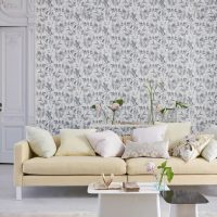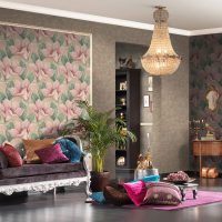 The collections of famous designers are often dominated by bright positive colors: yellow, pink, chocolate, turquoise. The priority is a complex color scheme: shades of olive and green, eggplant, sea wave. Floral and floral motifs are also very popular. However, if earlier they used a small pattern with wildflowers or roses filling the entire space, then judging by the photo of 2019, the design changed, and the wallpaper began to be released with more voluminous floral patterns. For adherents of conservative classics in the interior, light pastel shades remain relevant. Wallpapers are selected for specific household items with a similar texture. Wallpaper can also be combined with tulle, accessories and flooring.