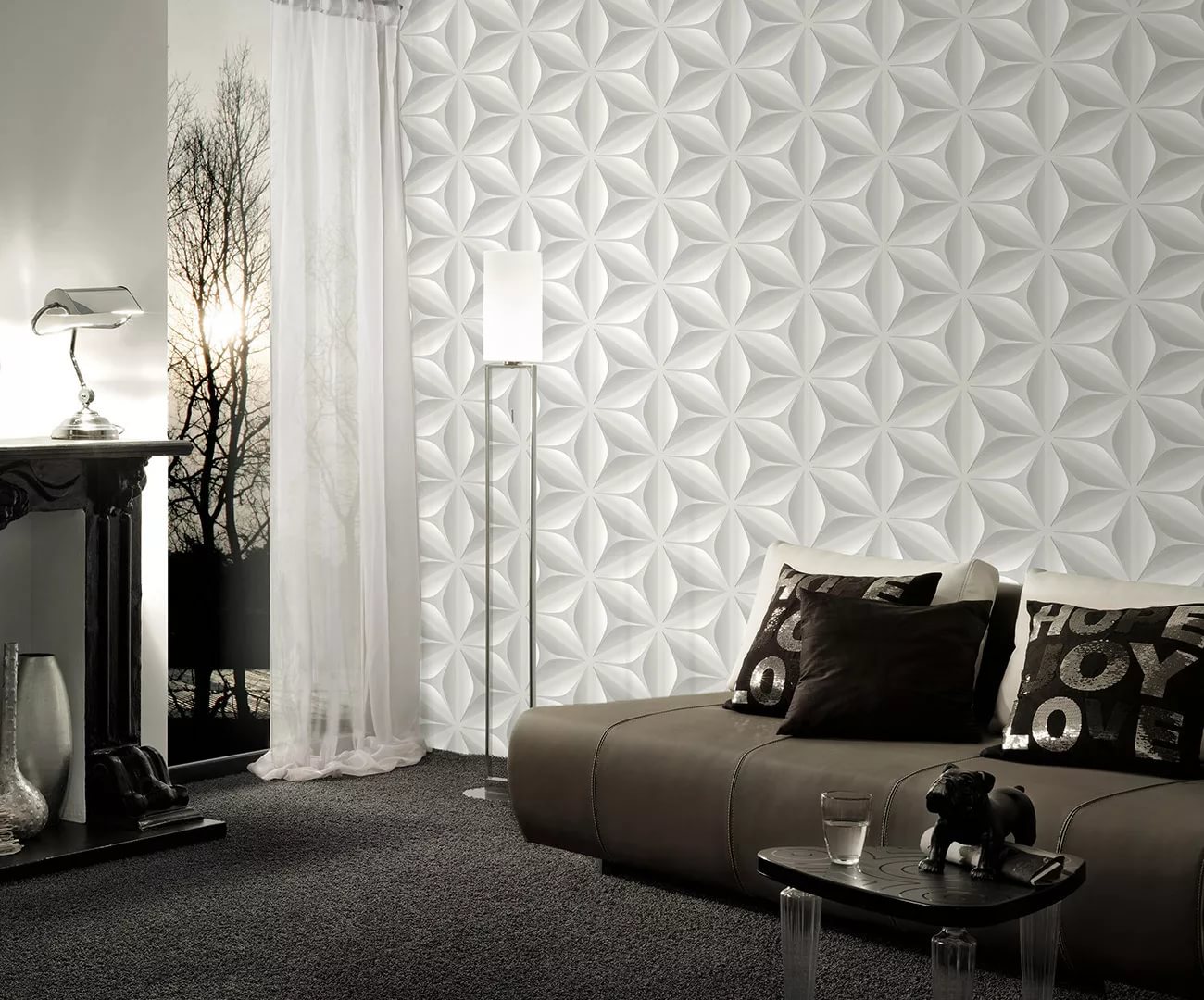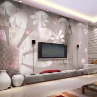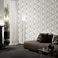 Today, few people can be surprised by a picture with a 3D effect. Such wallpapers are distinguished by strength, durability, environmental friendliness and high cost. There are fluorescent paintings with backlight. For the hall, it is better to choose options with geometric volumetric figures that make up complex compositions. However, 3-D wallpapers are used only as a decor, and an unusual finish. Therefore, it is advisable to paste them with no more than one wall in the room.