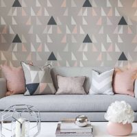 To begin with, designers are advised to choose a palette, and only then proceed to think about geometric shapes and patterns. So, the cold gamut visually increases even a small area, and the warm one makes it more lively and dynamic. For joining, it is better to select close colors or, conversely, diametrically opposed. Pasting each wall into a different tonality in order looks spectacular. You can create a growing gradient, for example, from dark to white, including intermediate shades. Ornaments should not shout over each other.