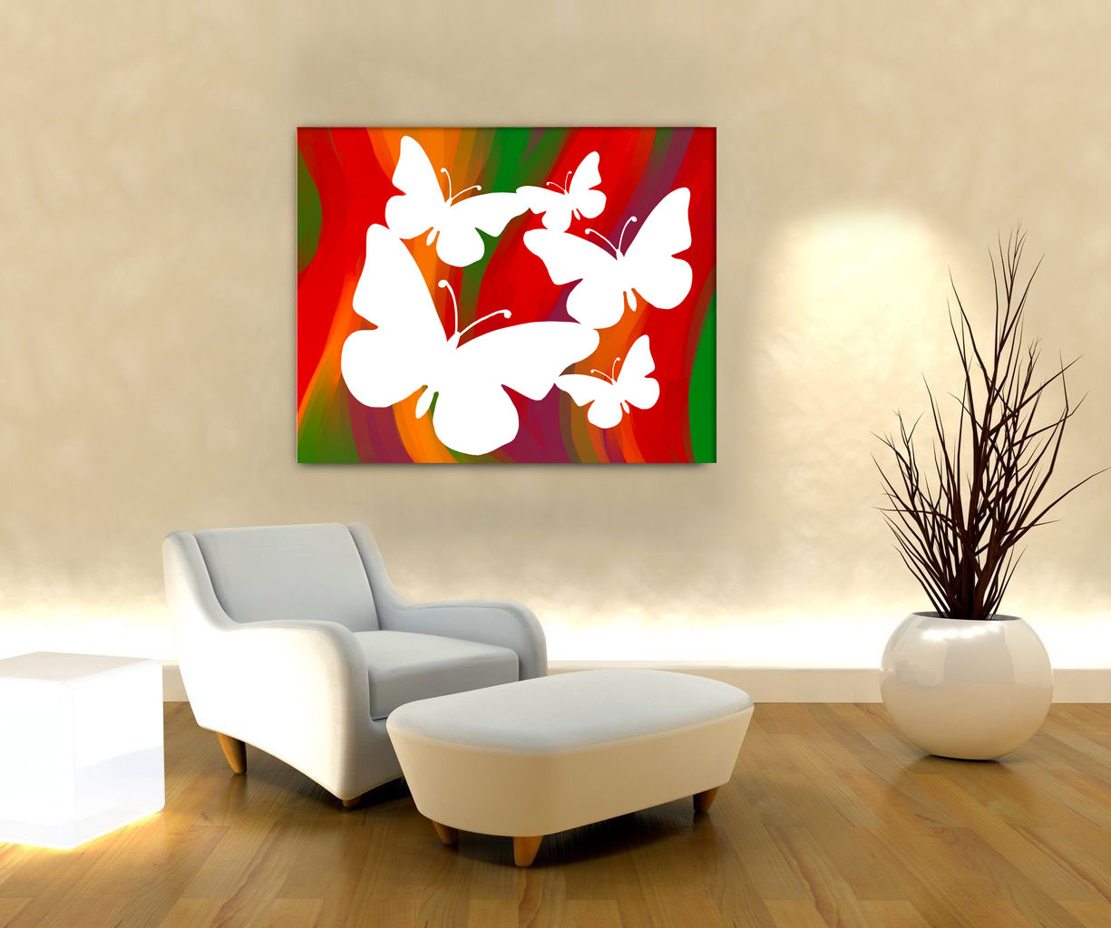 Multi-colored butterflies in the interior