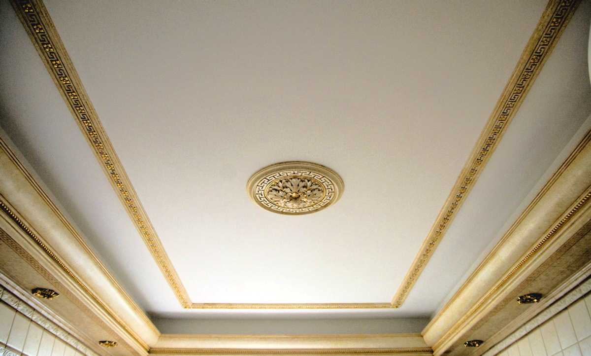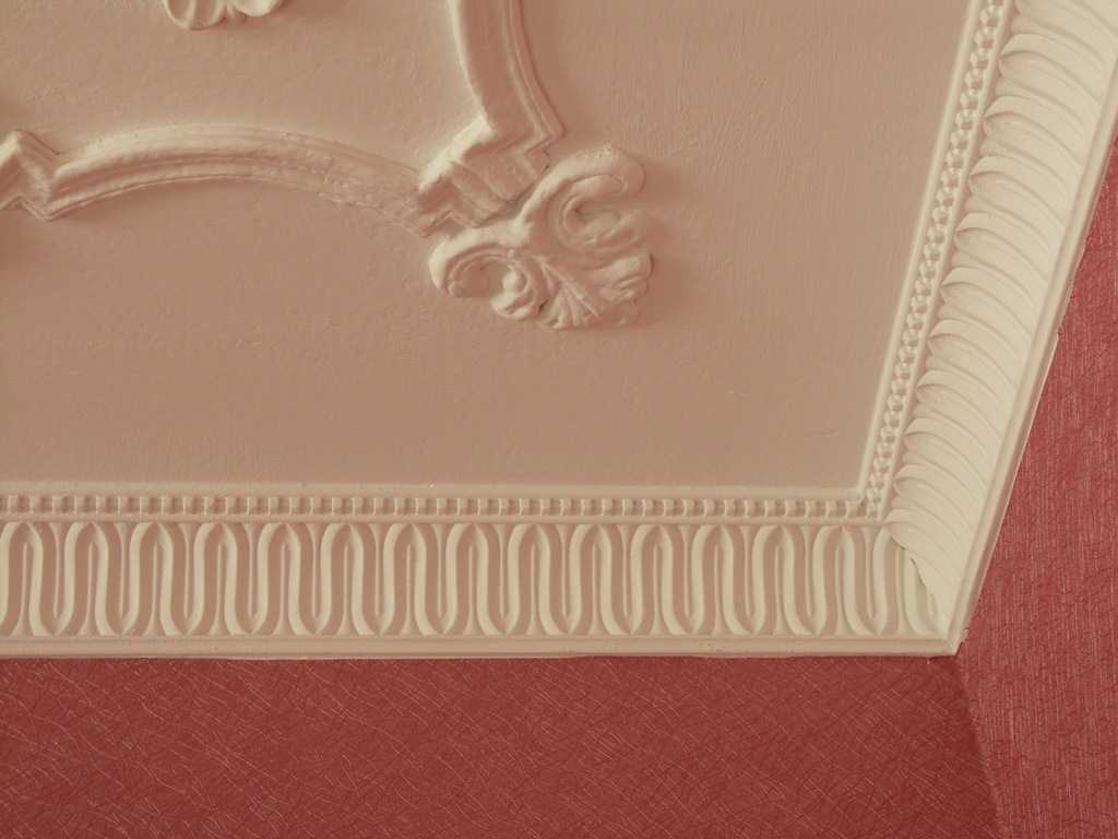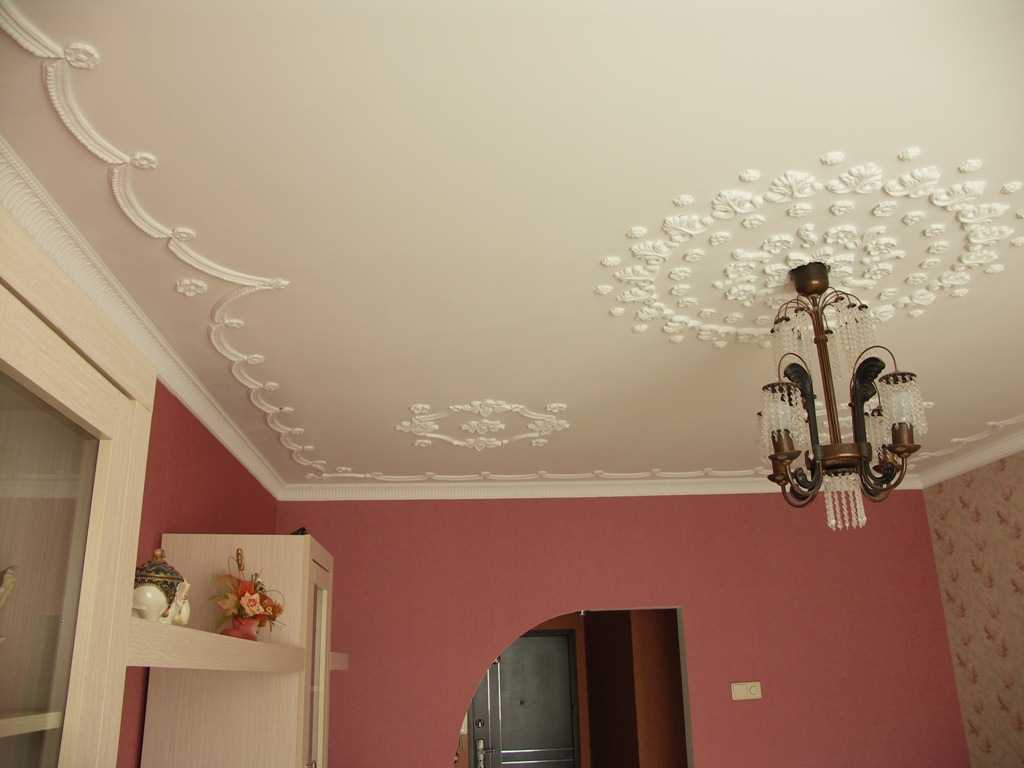 Stucco molding is mainly placed around the perimeter, around the chandelier. Often there is a painting framed by stucco. This material is easy to use, they can decorate the ceiling with their own hands. By combining various parts of stucco molding, you have the opportunity to create different shapes and shapes.