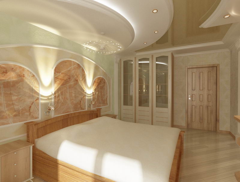 The successful design of the ceiling in the bedroom will provide the most complete rest.