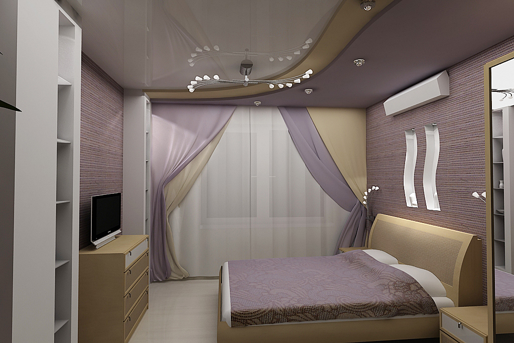 When designing a future ceiling, one must take into account the height of the bedroom.