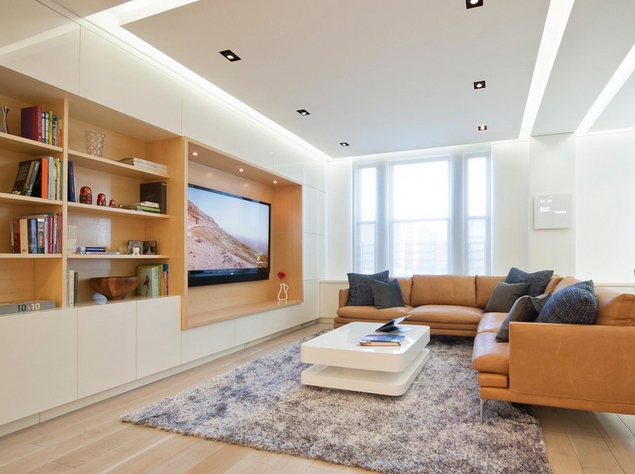 You can divide functional zones in your living room not only with the help of levels, but also with textures and tones of the ceiling. Thanks to this, there are many opportunities, especially in our time, when open planings, studio rooms, sliding partitions and dynamic modifications of space are preferred, depending on what time of day it is on the street or a person’s mood.