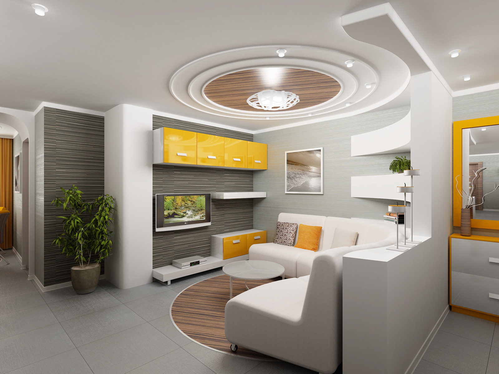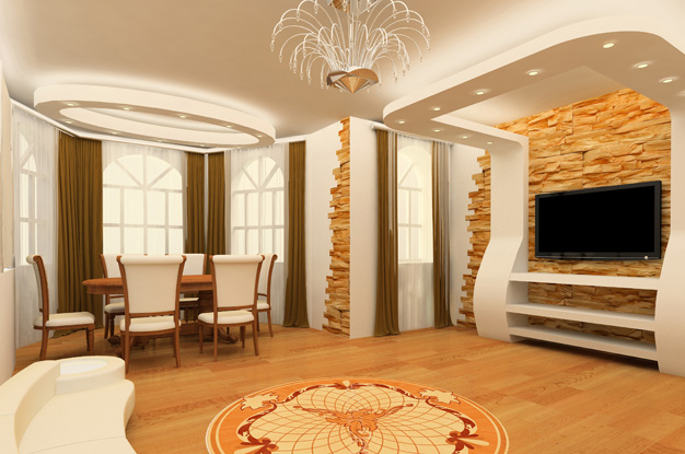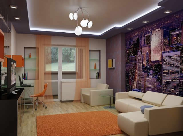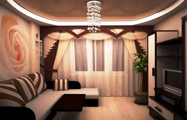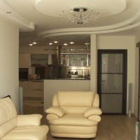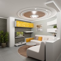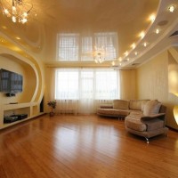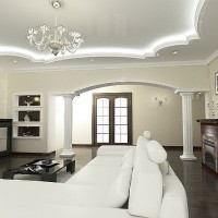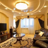 Not the last place in creating comfort in the room belongs to the ceiling design. To emphasize the design, add exclusivity and chic to it, make two-level drywall ceilings for the living room. Photo examples of such ceilings are provided by the Internet and related magazines. Properly designed ceiling will cause delight and white envy in the visitors of the living room.