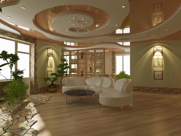 But the room must have large dimensions, and the ceiling configuration - functional logic. Because, like other ill-conceived objects, the ceiling in this case does not look appropriate or depressing.
