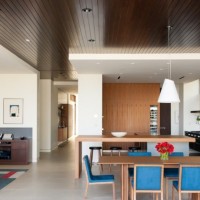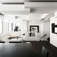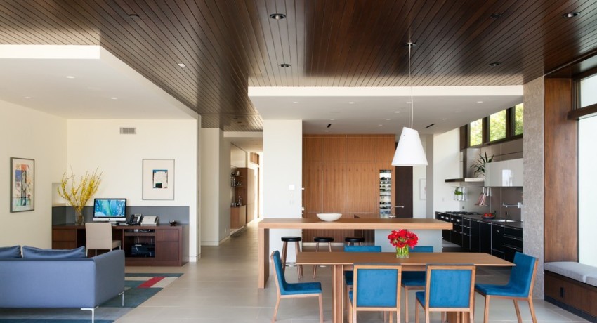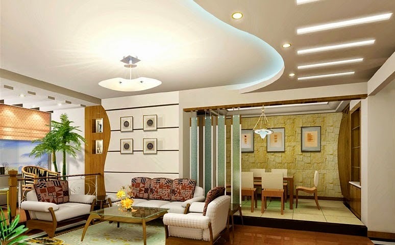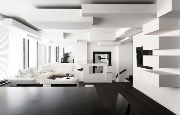 If you want to place a dining and sofa zone in the living room, the higher part of the ceiling is placed above the first one. And the sofa zone is emphasized by the low part. They also practice building a high ceiling and dividing it using a low level.