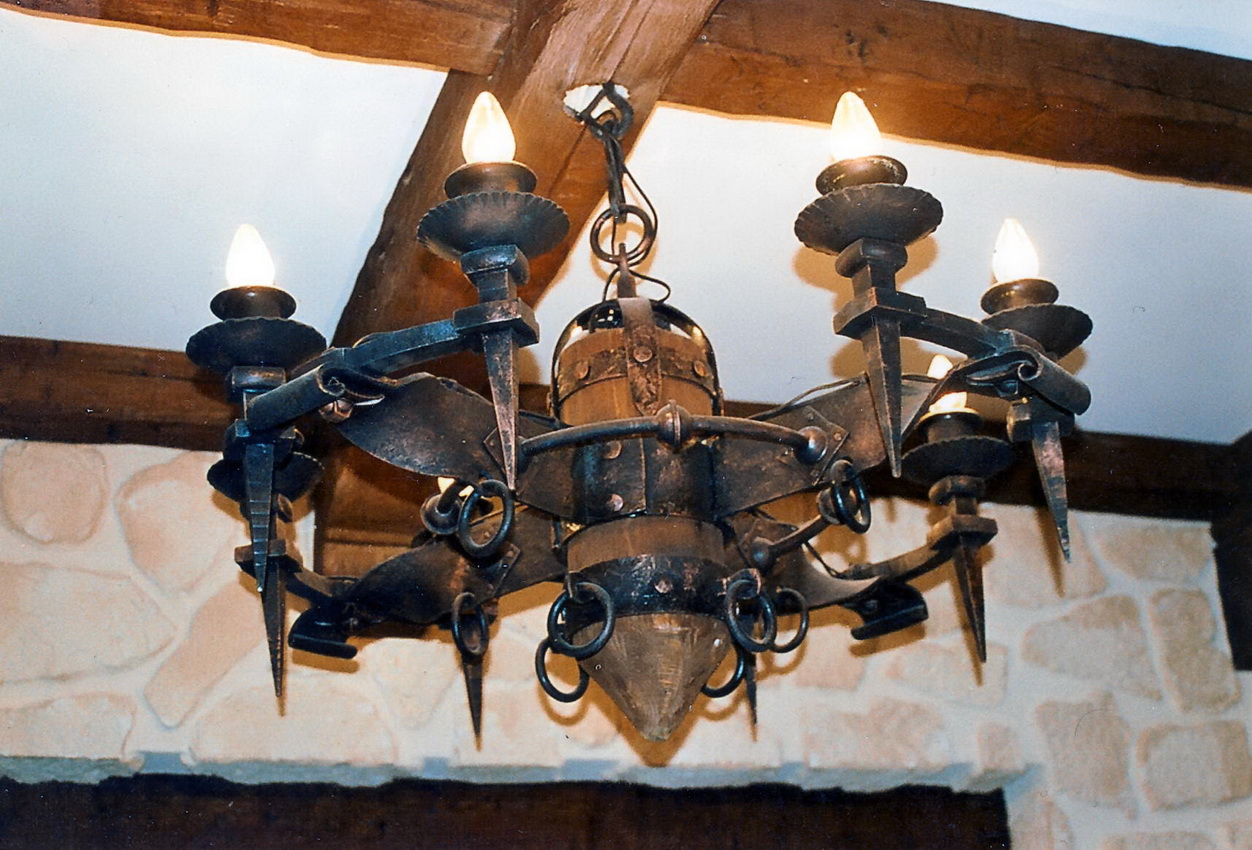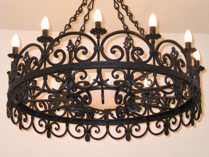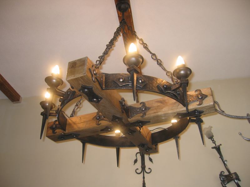 Forged chandelier is ideal for interiors made using wood or natural stone