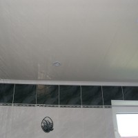 - The ceiling made of PVC film, due to its water resistance, elasticity and sufficient strength, helps save things in the bathroom in the event of flooding by neighbors from above. Fabric ceiling with a task of this kind copes much worse.