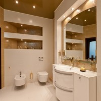 From the above information, it follows that both types of paintings for suspended ceilings meet the main operational requirements that apply to the finishing materials of the bathroom, and the installation of a stretch ceiling in the bathroom is quite acceptable. But, like any other finishing option, stretch ceilings have their positive and negative sides. Let's list the main advantages in favor of installing ceilings in the bathroom from both materials: