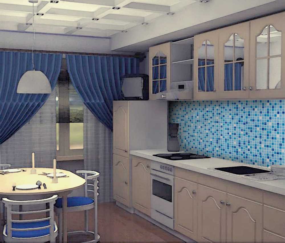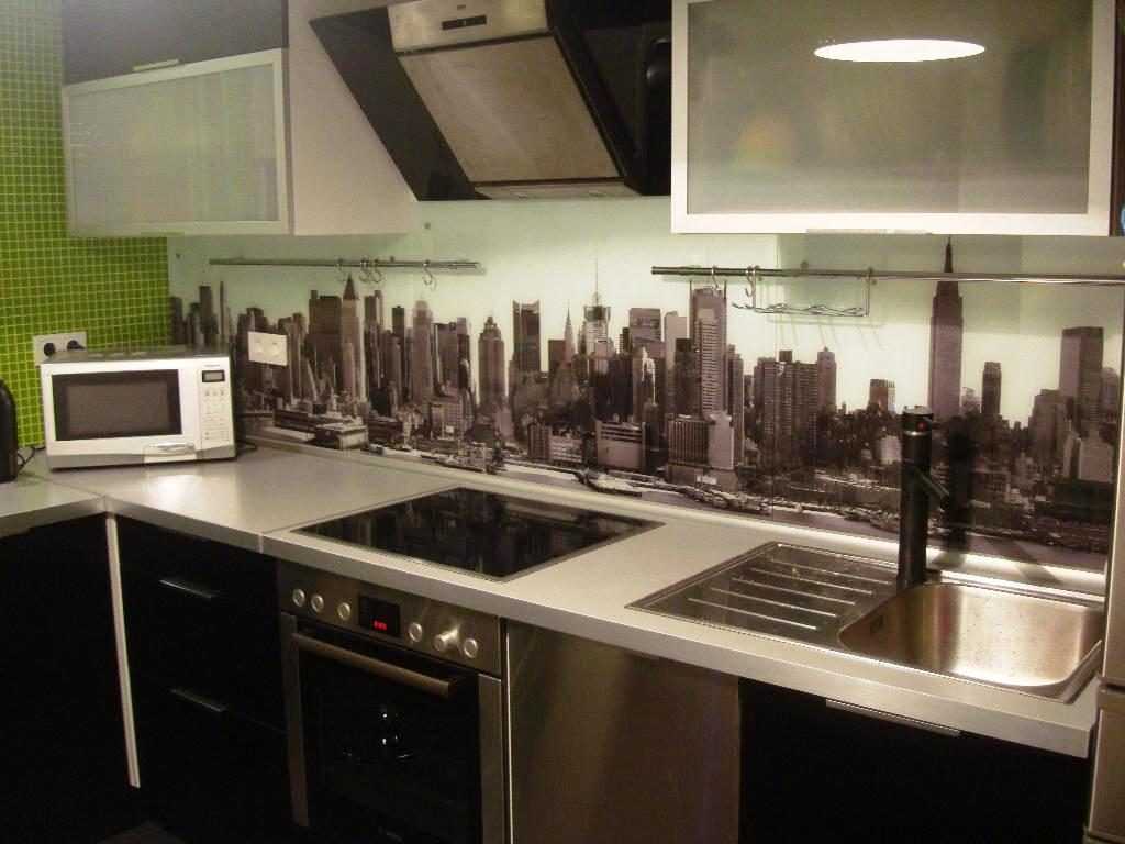 Kitchen. The material is well suited as aprons of the working area, due to moisture resistance, ease of maintenance and variation of decorative design depending on the style of the interior.
