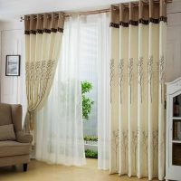 Beige and sand tones in the color of curtains are always relevant and easily combine with almost all colors and styles.