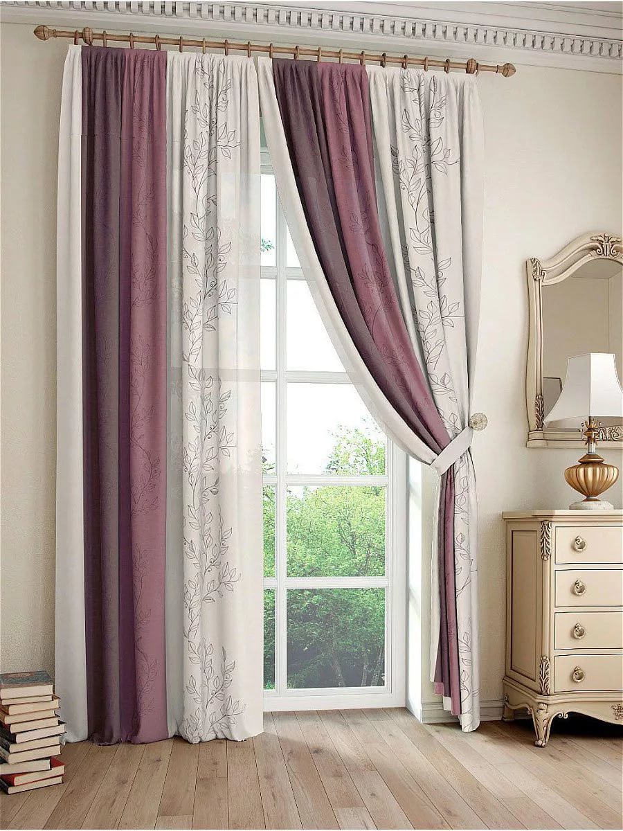 Draperies are a dense fabric. This option can be combined with light curtains or roller blinds.