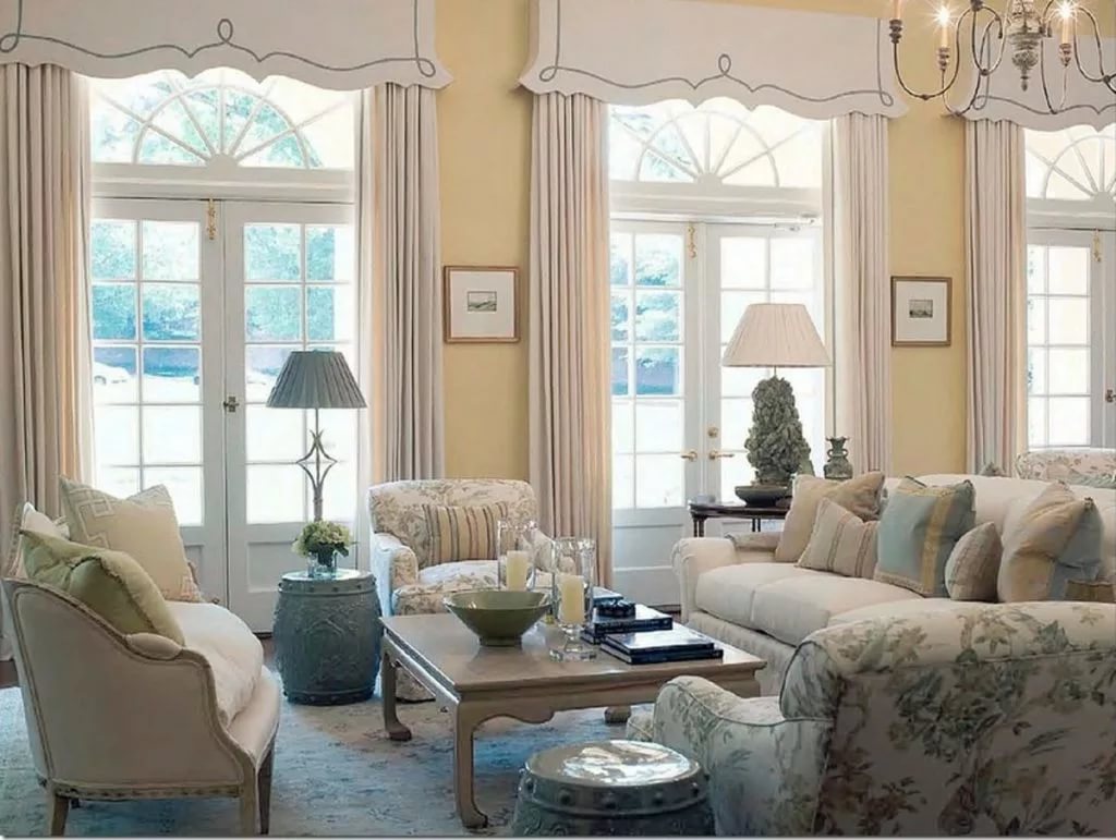 They are also called “country curtains” or “grandmother’s window”. They will be optimal for simple styles such as Provence, country, shabby chic.They look like one or two curtains that are mounted on a cornice in the middle of the window or slightly lower.