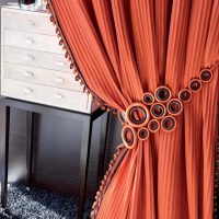 2. Exceptionally decorative functions are performed by all kinds of additions: lambrequins, fringe, beads, ribbons, magnetic jewelry. However, sometimes such elements can also be functional in nature, if they help to adjust the space, appearance and shape of the curtains, mask the eaves.