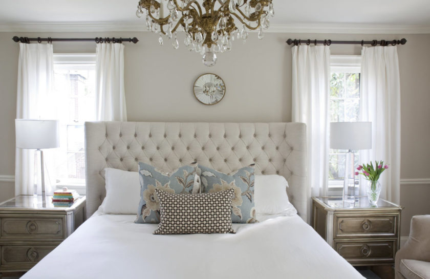 Straight beige curtains work well for classic style bedrooms or for French Provence