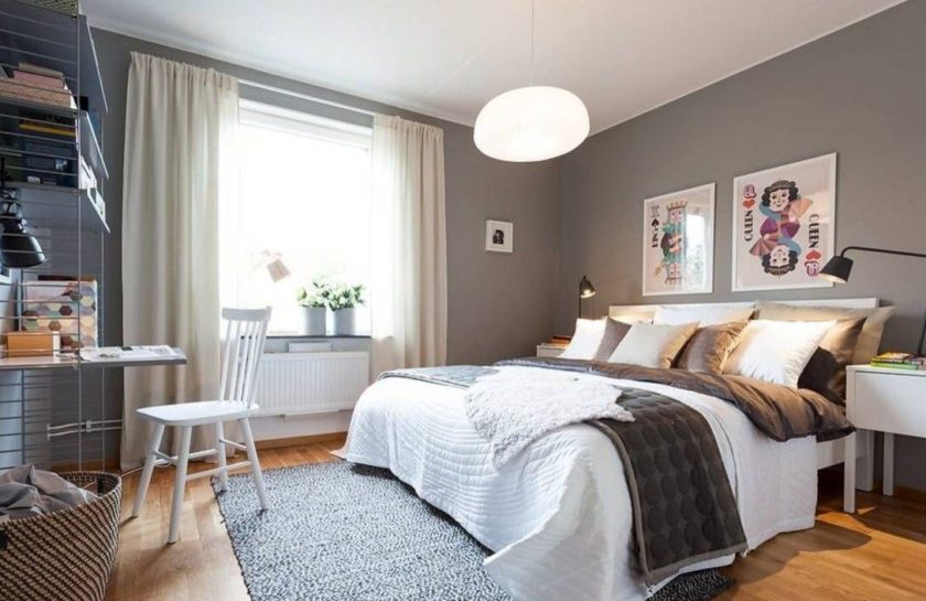 The closer the bedroom is, the more light colors are used to design it. If its windows are relatively large, facing the south or southeast side of the world, it is allowed to apply cold, medium-saturated tones. For small bedrooms with low ceilings, narrow windows, especially facing the north, north-west, exclusively light, warm colors are used.