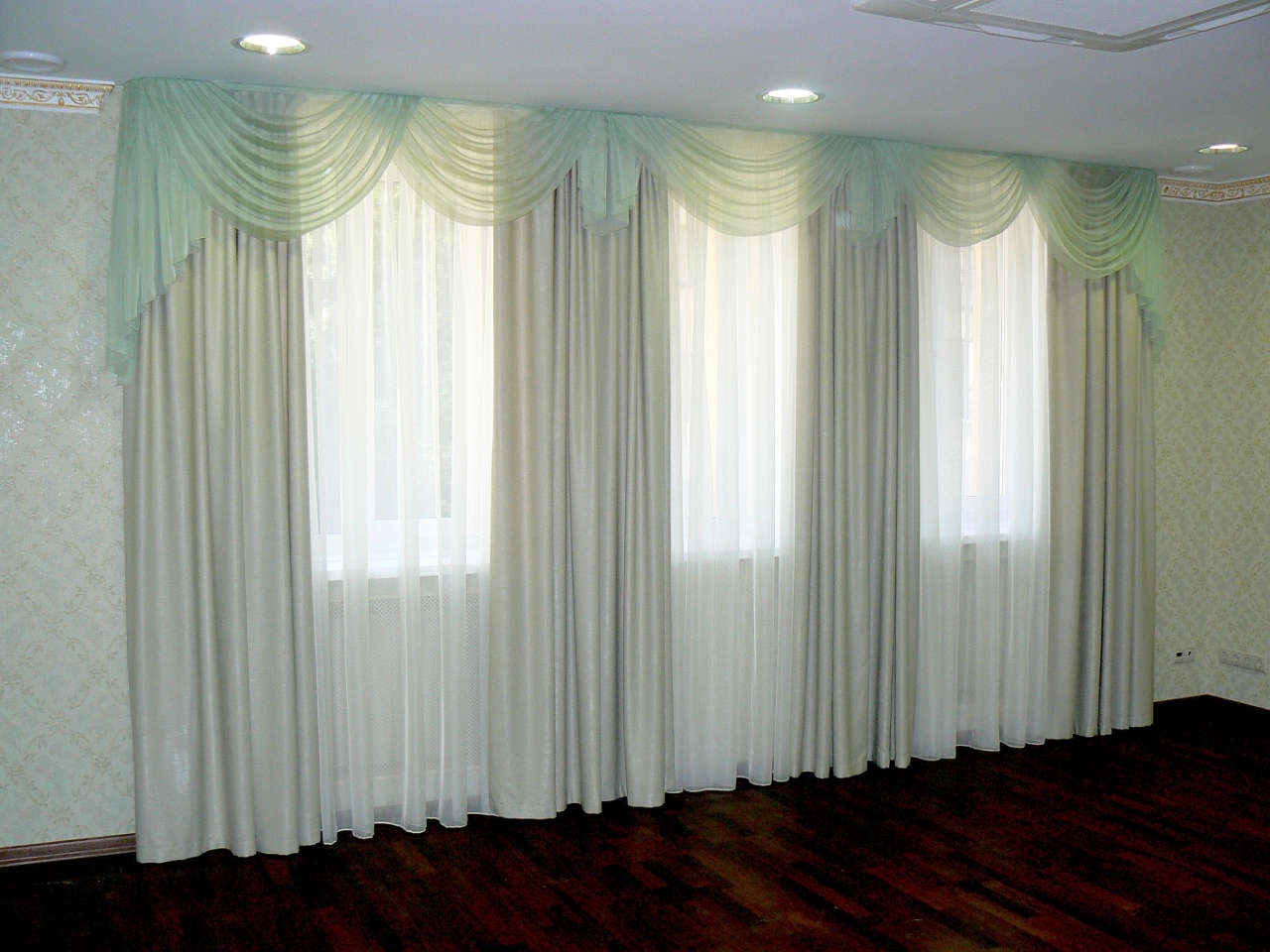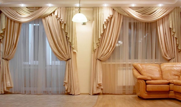 Attention: Heavy velvet or brocade curtains are not recommended, prefabricated French curtains will not work, the lambrequin will also be doubtful (maybe hard will not spoil the picture, but its shape should be clear, “without curls”).
