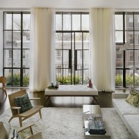In this case, the style of the room itself dictates its own rules in the design of the window opening. We recommend fabrics of smooth or textured weaving, the style of curtains that resembles Japanese: tightly stretched fabric like a screen, with a strict graphic pattern.