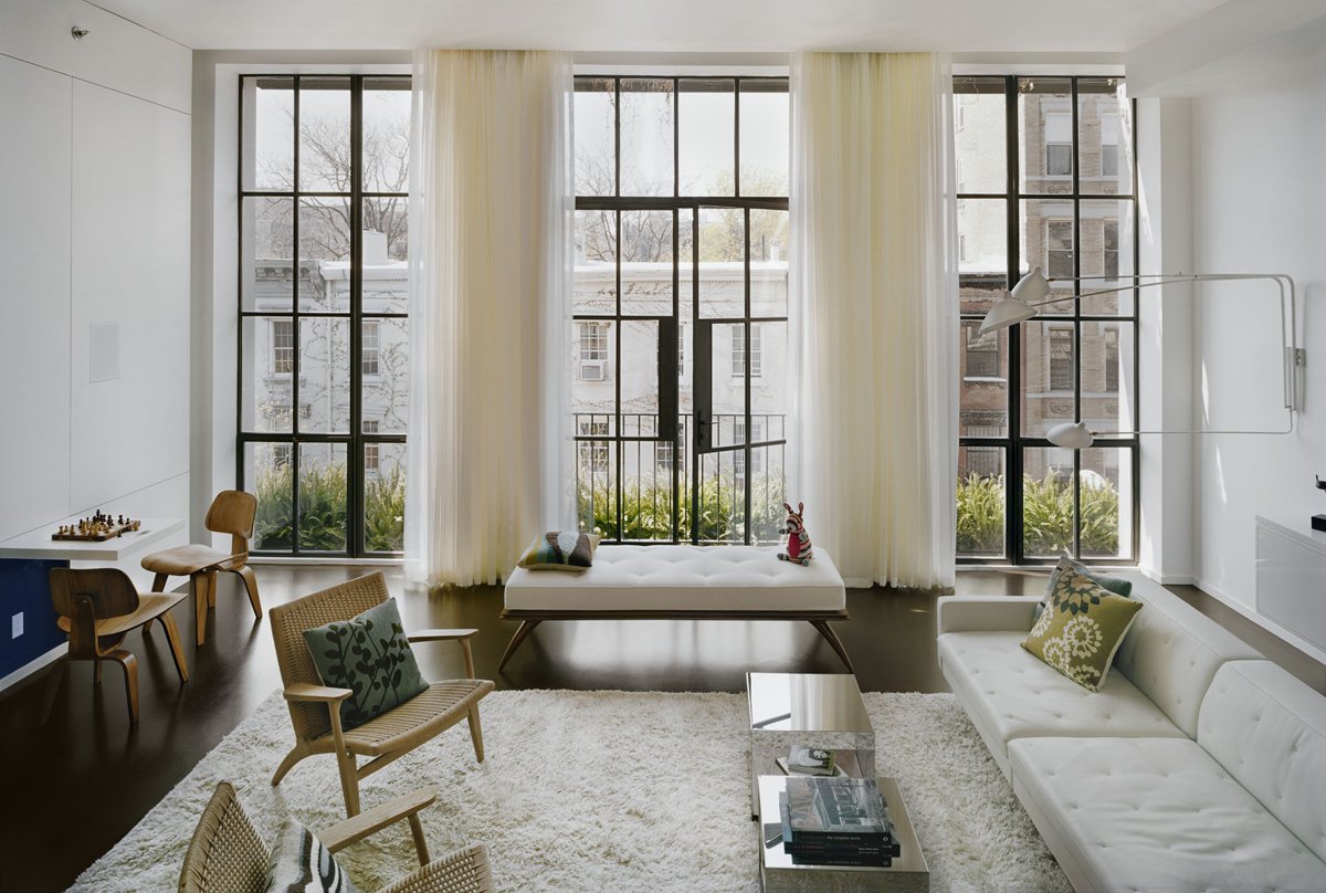 If you are a happy owner of a large, spacious room with high ceilings, then you will see all the wealth of both style and design solutions. A high wide window can and should be designed in such a way that it becomes the main object of attention in your living room.