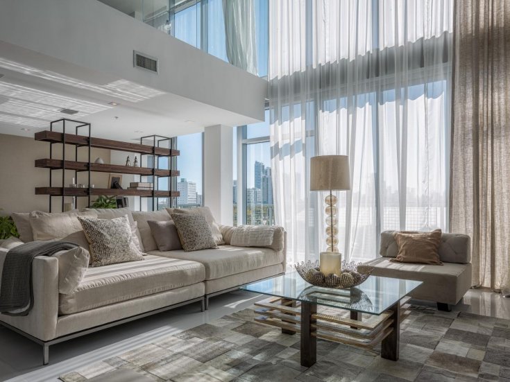 Curtains can be classic or made in a minimalistic manner, rolled, Roman curtains. The latest model should be chosen for rooms where windows are large. Then the curtains will be only functional and will not close the beautiful view of the opening.