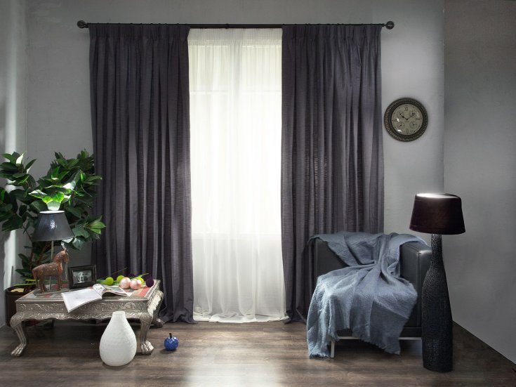 Curtains in gray tones are distinguished by sophistication, elegance and respectability. The key advantage is the versatility of the product. You can perfectly add neutrality to the room, but not make it boring.
