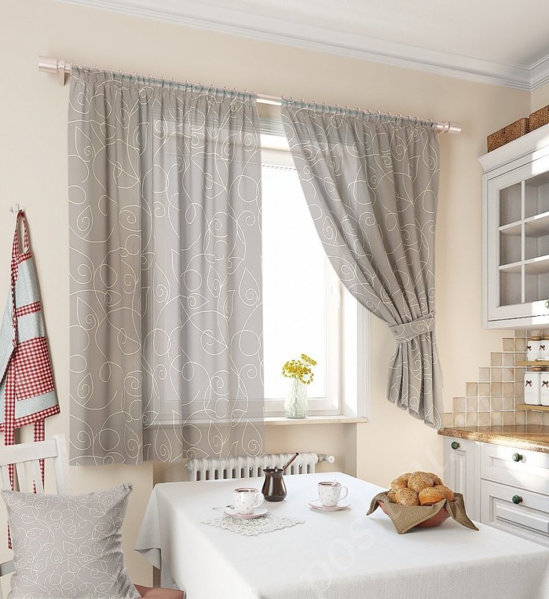 Many designers advise in the kitchen to design a window in gray tones or use a fabric with elements of these colors. Curtains look stylish, but remain practical. The kitchen is a place where food is constantly prepared. Therefore, light colors quickly get dirty and lose their former attractiveness. But gray items can be beautiful for a long time.